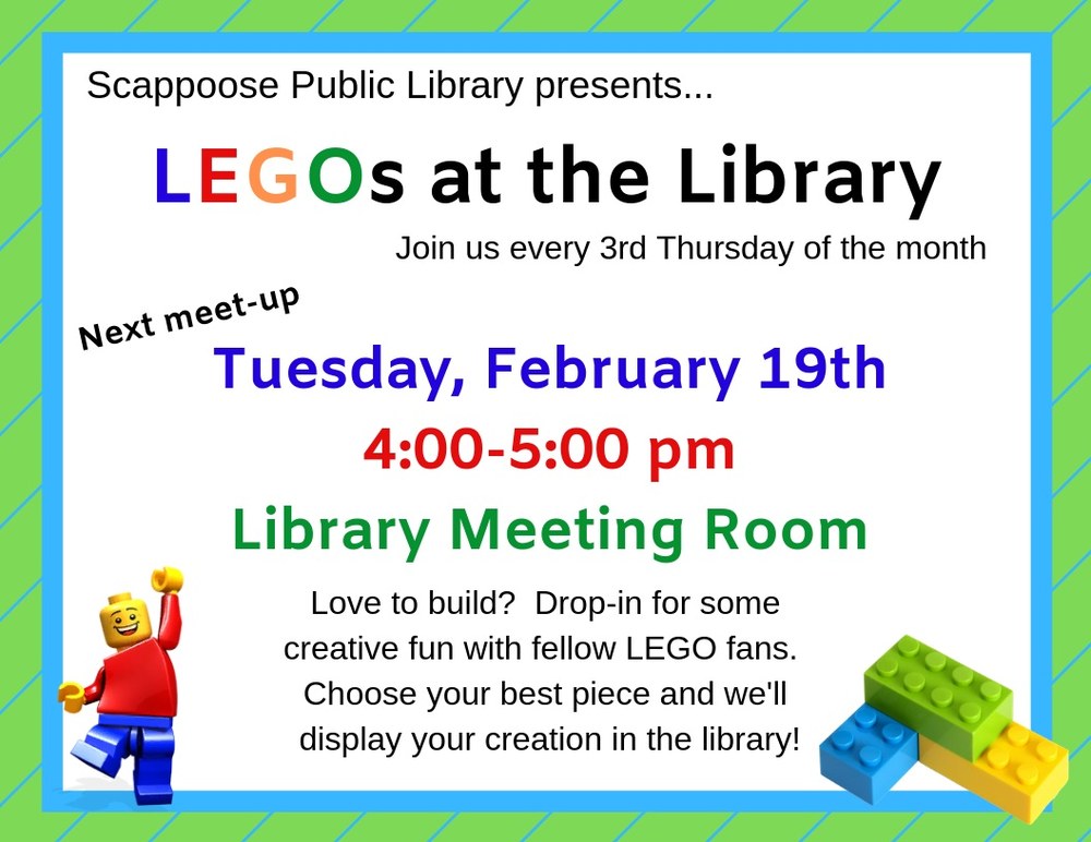 - https://www.scappooselibrary.org/news-events/legos-in-the-library-5
